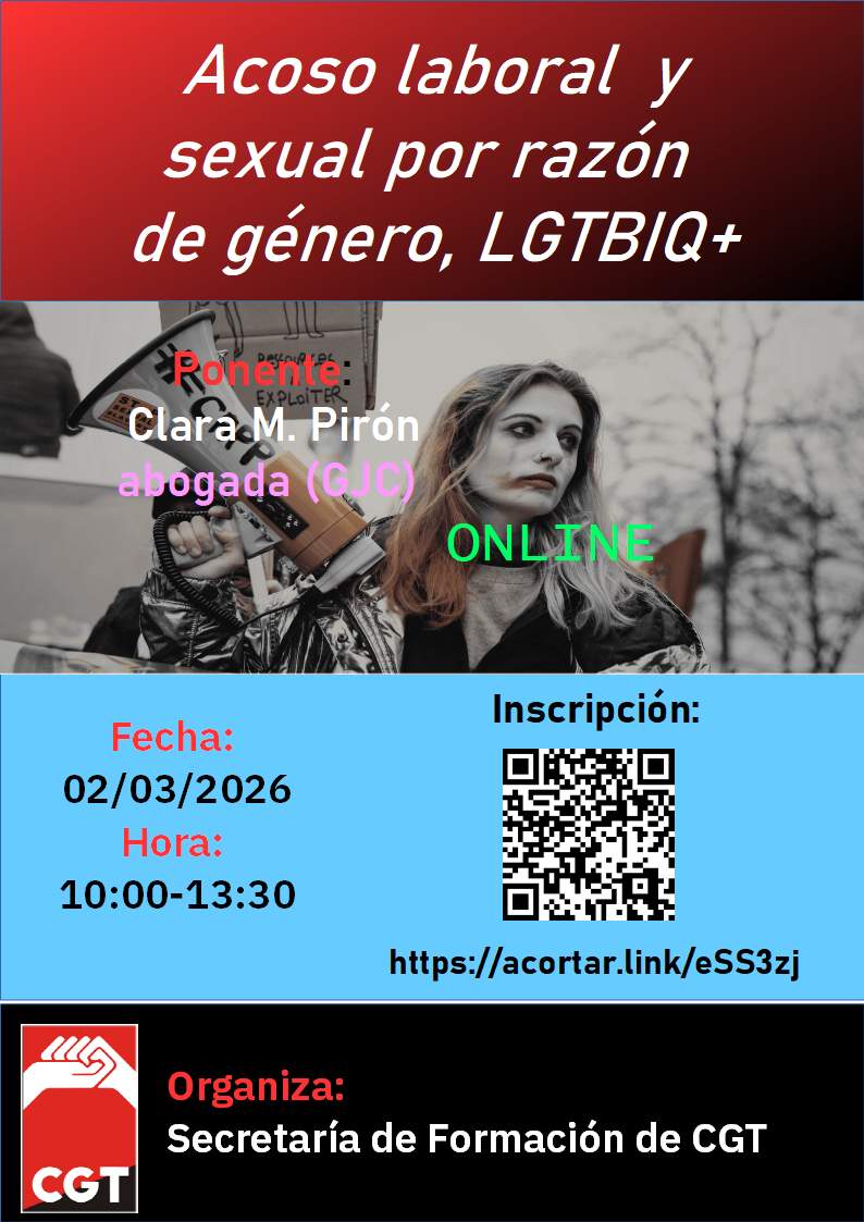 Curso que informa sobre las relaciones de acoso laboral y sexual por razón de género LGTBIQ en formato ONLINE. Cuando envíe las respuestas DEBE inscribirse en el enlace de Zoom que aparecerá al final.