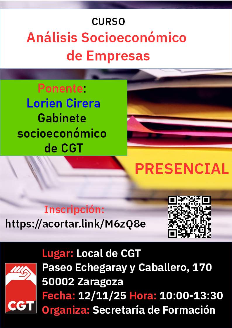 Lugar: local de CGT. Paseo Echegaray y Caballero, 170, 50002 Zaragoza,