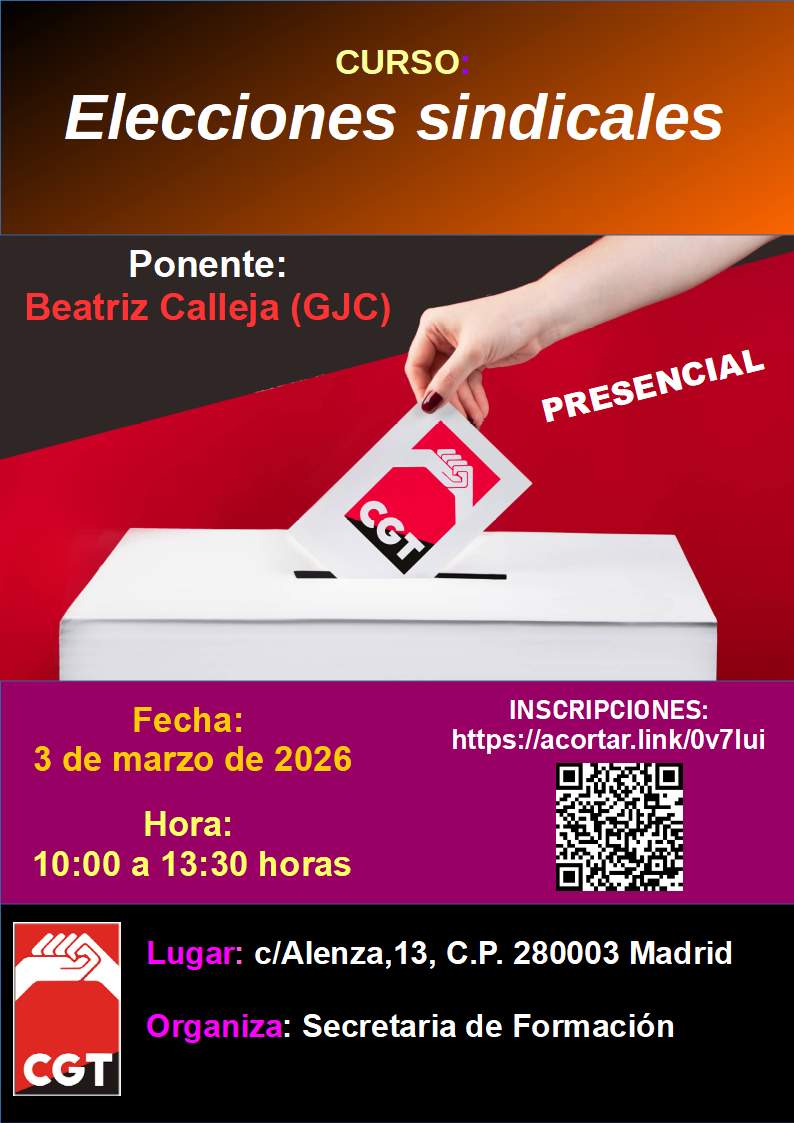 Curso de CGT "Elecciones sindicales " Presencial en Madrid