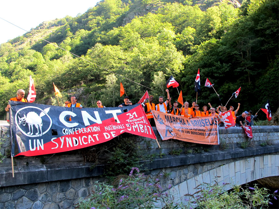 Aunque queda mucho hasta Bruselas, los kilómetros recorridos van haciendo mella y el recibimiento en la frontera por compañeros y compañeras que comparte las reivindicaciones de la marcha, estimula y motiva a seguir caminando. Resulta muy gratificante cuando las sensaciones de no estar solos en la lucha se visualizan como en el día de hoy.