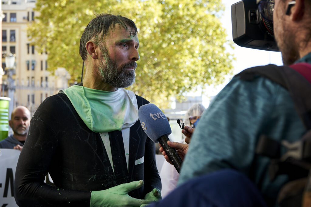 Dentro del Toxic Trade Tour, las organizaciones convocantes en el Estado español  —Attac, Amigas de la Tierra, Ecologistas en Acción, Entrepueblos, Greenpeace, Justicia Alimentaria— (2) han realizado una performance en Madrid frente al Ministerio de Agricultura, Pesca y Alimentación para señalar el apoyo del Gobierno español a la firma de este tratado. Durante la acción,  han colocado una pirámide de barriles tóxicos ante el Ministerio, mientras que activistas con disfraces de responsables políticos (del presidente español Pedro Sánchez, la presidenta de la Comisión Europea Ursula Von der Leyen y el ministro de Agricultura español Luis Planas) han sido interpelados por el público sobre los riesgos que entraña este acuerdo comercial para el clima, la salud y la justicia social. Ante las respuestas esquivas o no creíbles de los políticos, estos han recibido una reprimenda en forma de ducha de productos tóxicos (3). Acto seguido, se ha leído un manifiesto (4) recordando la gran cantidad de colectivos de la sociedad civil y de lo sectores agrícolas afectados que se oponen a este acuerdo (5).